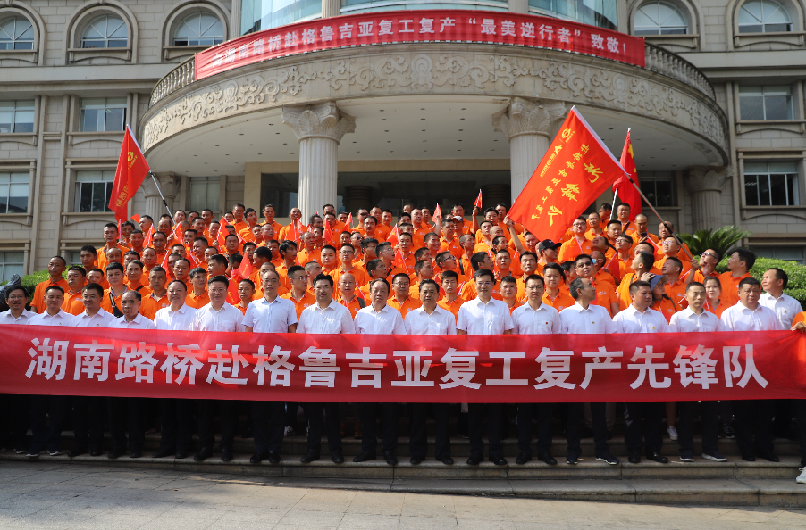 “走出国门,你代表的就是中国”。出征仪式上,湖南交水建集团党委书记、董事长方联民向赴格团组领队授“赴格鲁吉亚复工复产先锋队”队旗。省国资委党委委员、副主任张美诚,湖南交水建集团和欧宝集团相关向导对团组成员举行慰问,赠予防疫爱心礼包,欢送这群为国际工程履约、奔赴外洋的“最美逆行者”。